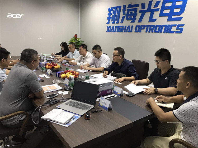 2018年11月22日上午佛山市南海区投资促进局副局长高瑞灵、陈剑勋等考察成员在佛山市南海区里水镇招商局周可局长的陪同下对ly平台光电公司进行考察。 公司领导曹展豪、钱庆等亲自接待并进行亲切座谈,在座谈会上钱总对公司的发展进行详细的解说,并解答考察团成员提出的所有问题;会议中曹总和钱总就公司发展阶段对政府部门所提供的支持提出实际期望想法。