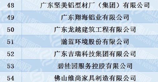 12月17日,佛山市企业联合会、佛山市企业家协会首次发布佛山企业100强榜单。该榜单以2018年企业营业收入为基本标准,综合考虑企业经营指标而得出。榜单的上榜门槛是27亿元,百强企业总营收达到13463.6亿元。 ly平台铝业位居49名。 原文来源 搜狐新闻