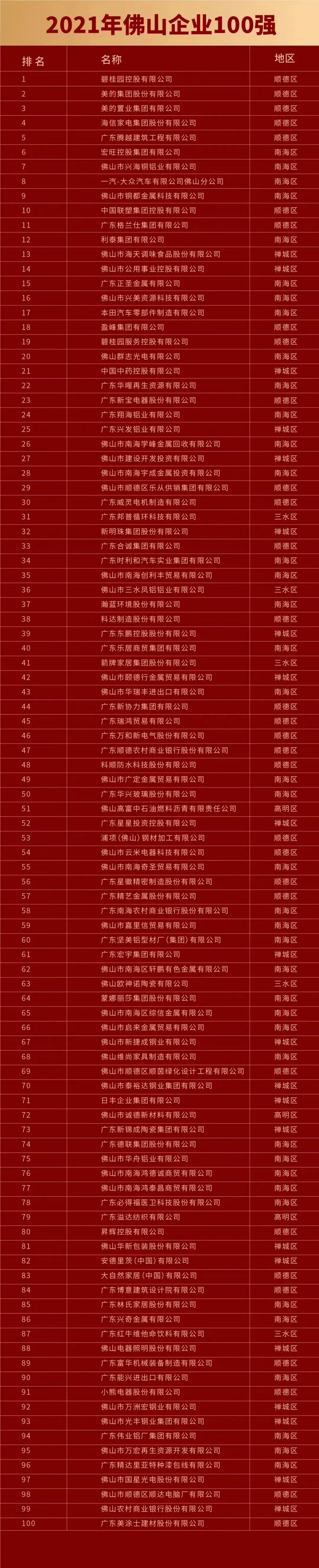 附:2021年佛山企业100强完整榜单