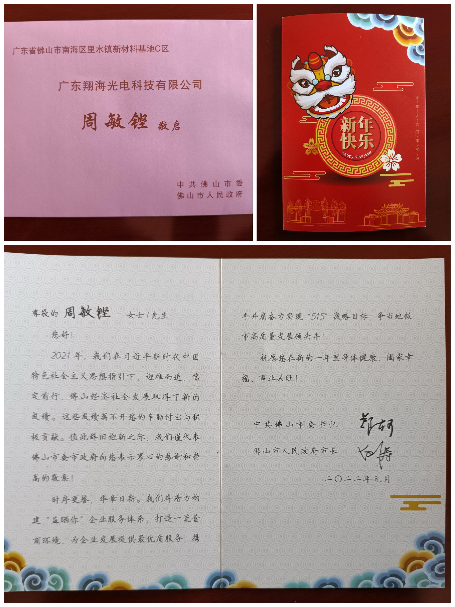 值此辞旧迎新之际,广东ly平台ly(中国)有限公司收到了来自佛山市委、市政府的新年贺卡,深切感受到了党和政府对企业的关心与祝福,倍感温暖、备受鼓舞。