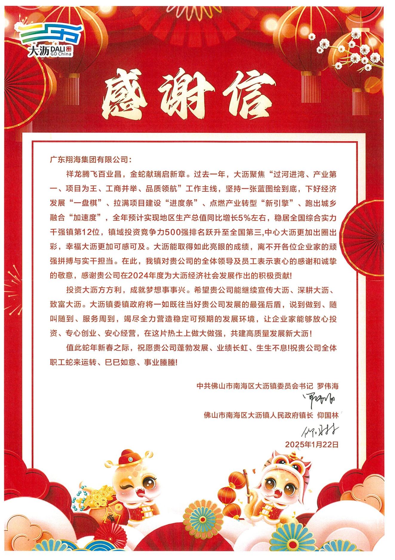 ly平台深感荣幸,新春之际收到了一封来自大沥镇政府的感谢信。作为大沥的本土企业,我们深知企业的成长离不开当地政府和社会各界的支持与厚爱。在此,我们衷心感谢大沥镇委镇政府,感谢各位合作伙伴的鼎力支持和信任。